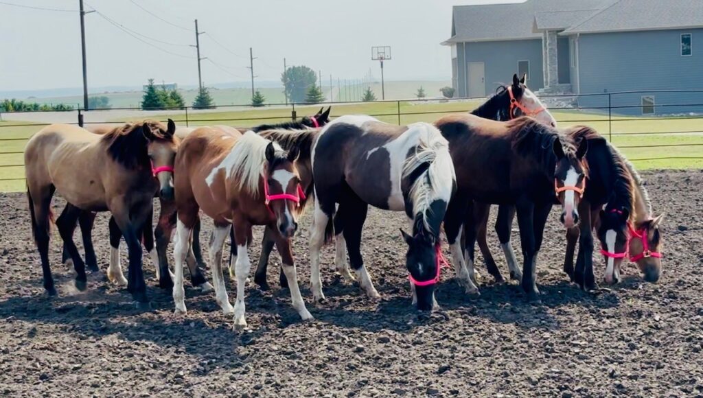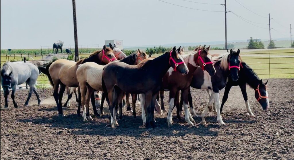 Lot 189: “Beauty” Grullo/White. Yearling. Beauty is a beautiful Grullo & White Paint Percheron Quarter Horse cross Filly. She will be an outstanding riding / driving horse someday.