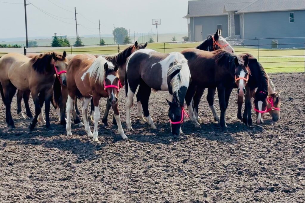 Lot 190: “Patches” Dun & White Paint. Yearling. Patches is an outstanding Percheron Quarter Horse cross Filly. She is a ¾ sister to Beauty, also in the sale. She is a loud colored Dun & White Tobiano Paint.