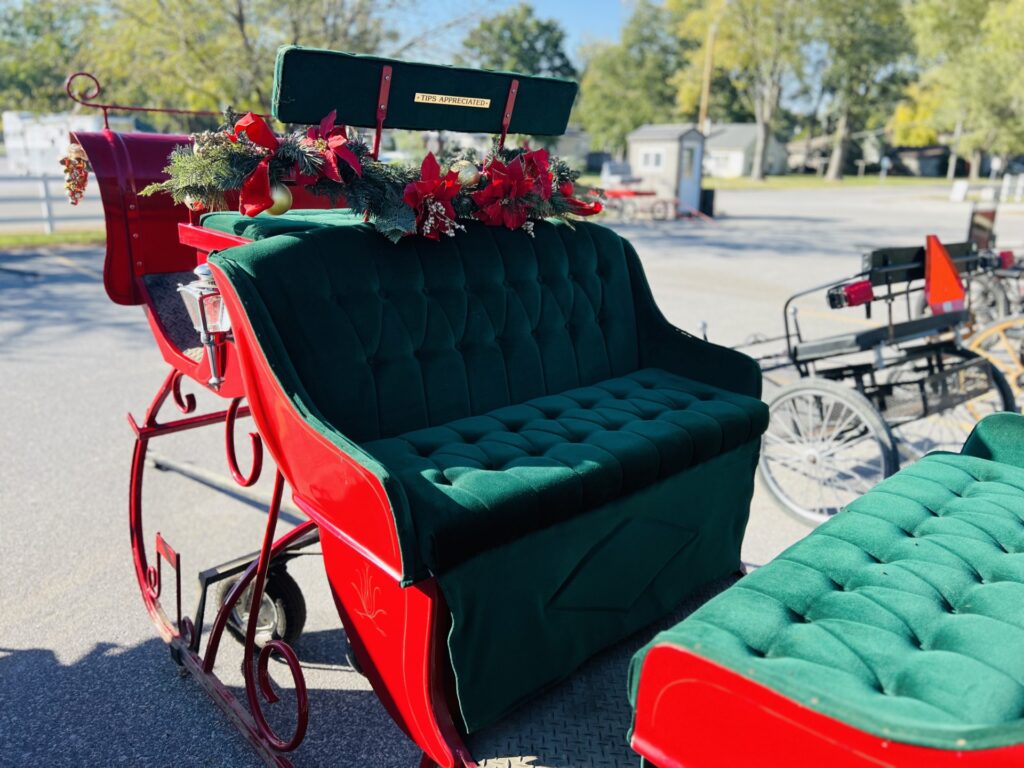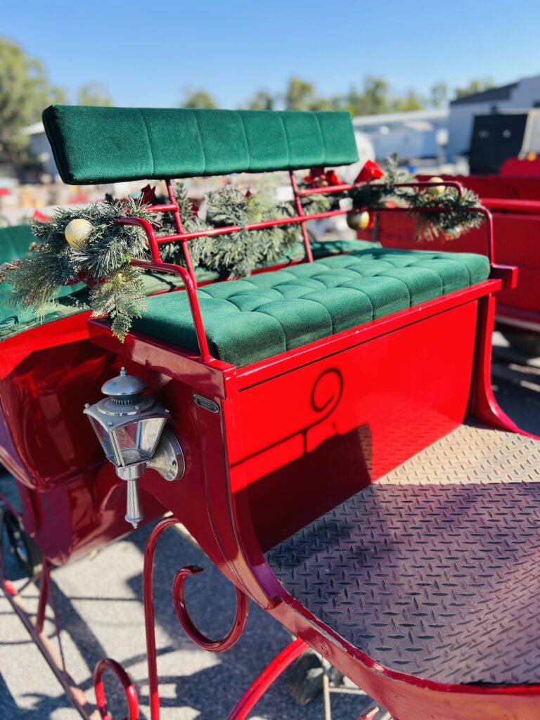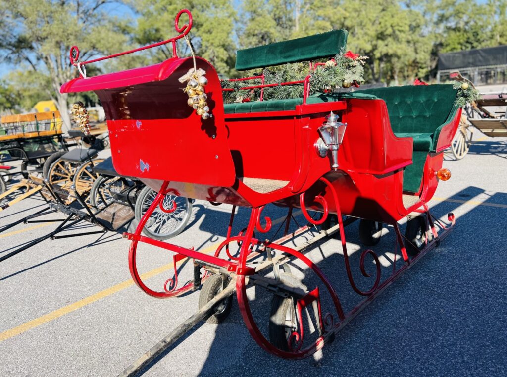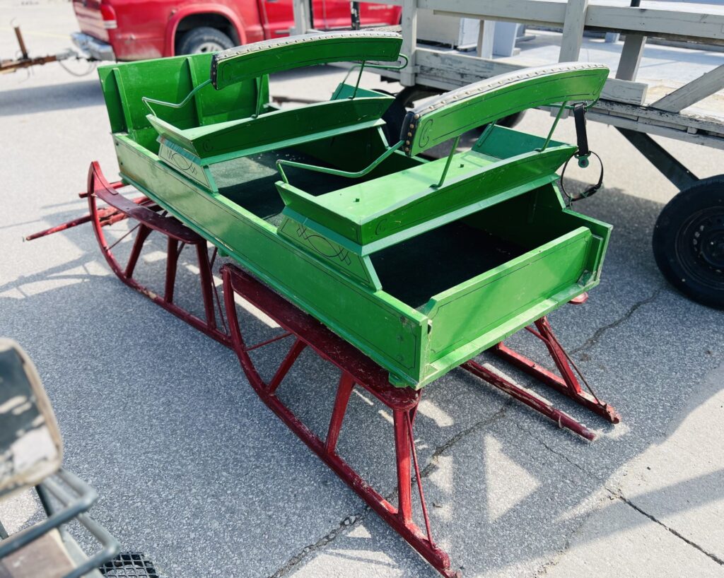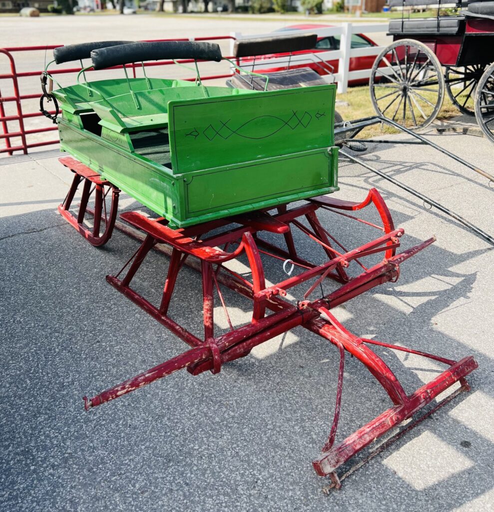 Roberts Sleigh. Red with Green Velvet Seats, Green Pinstripe and Lanterns.