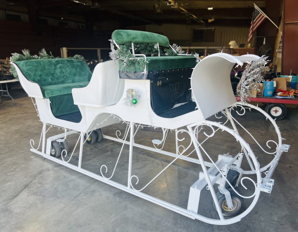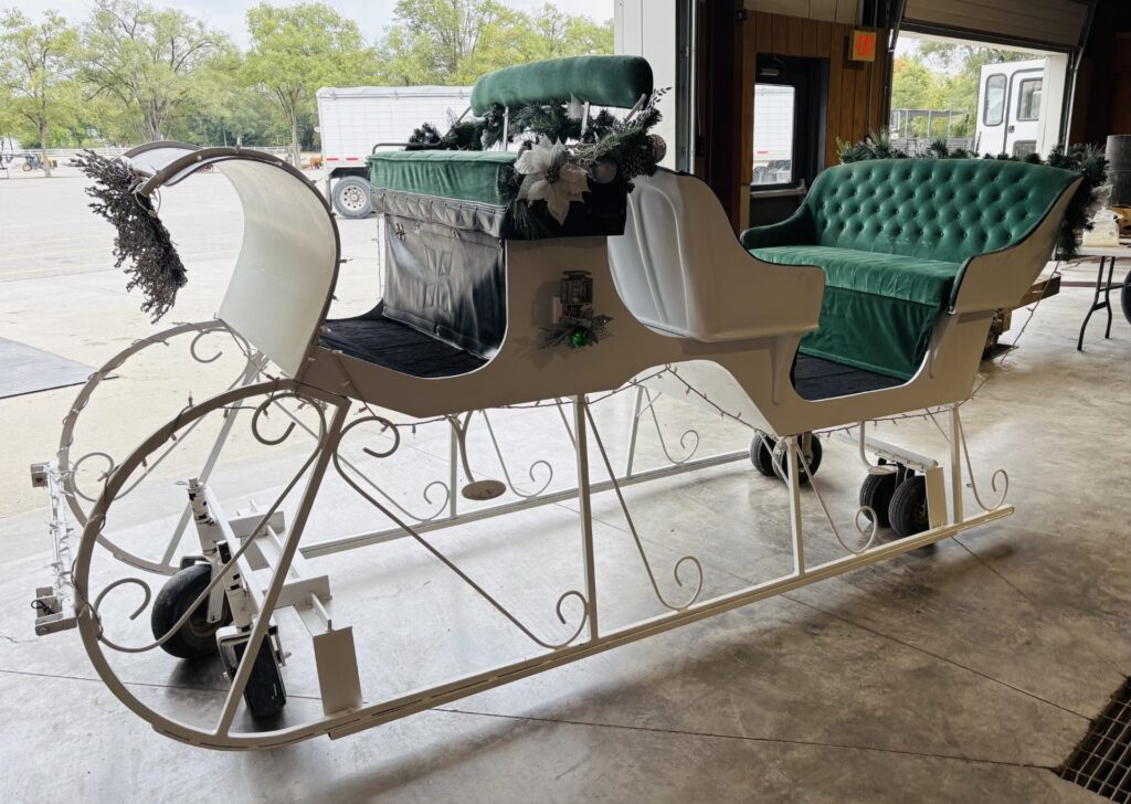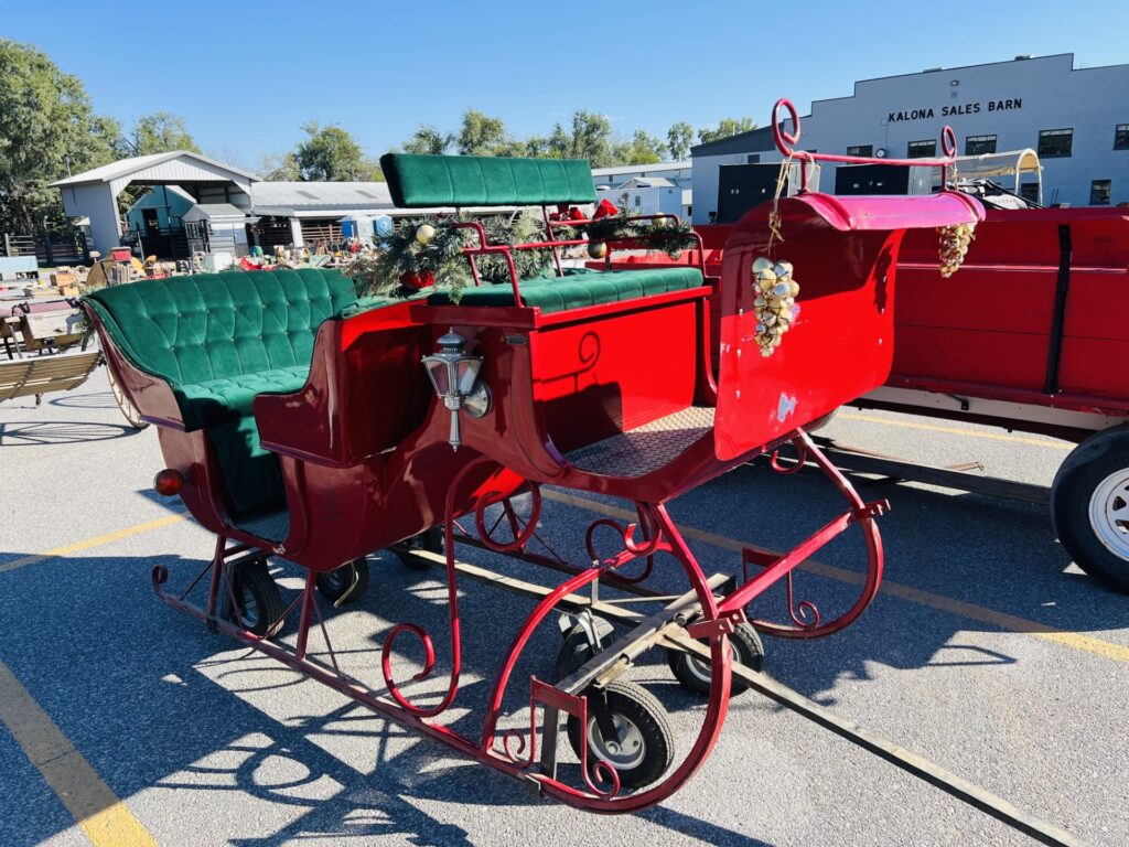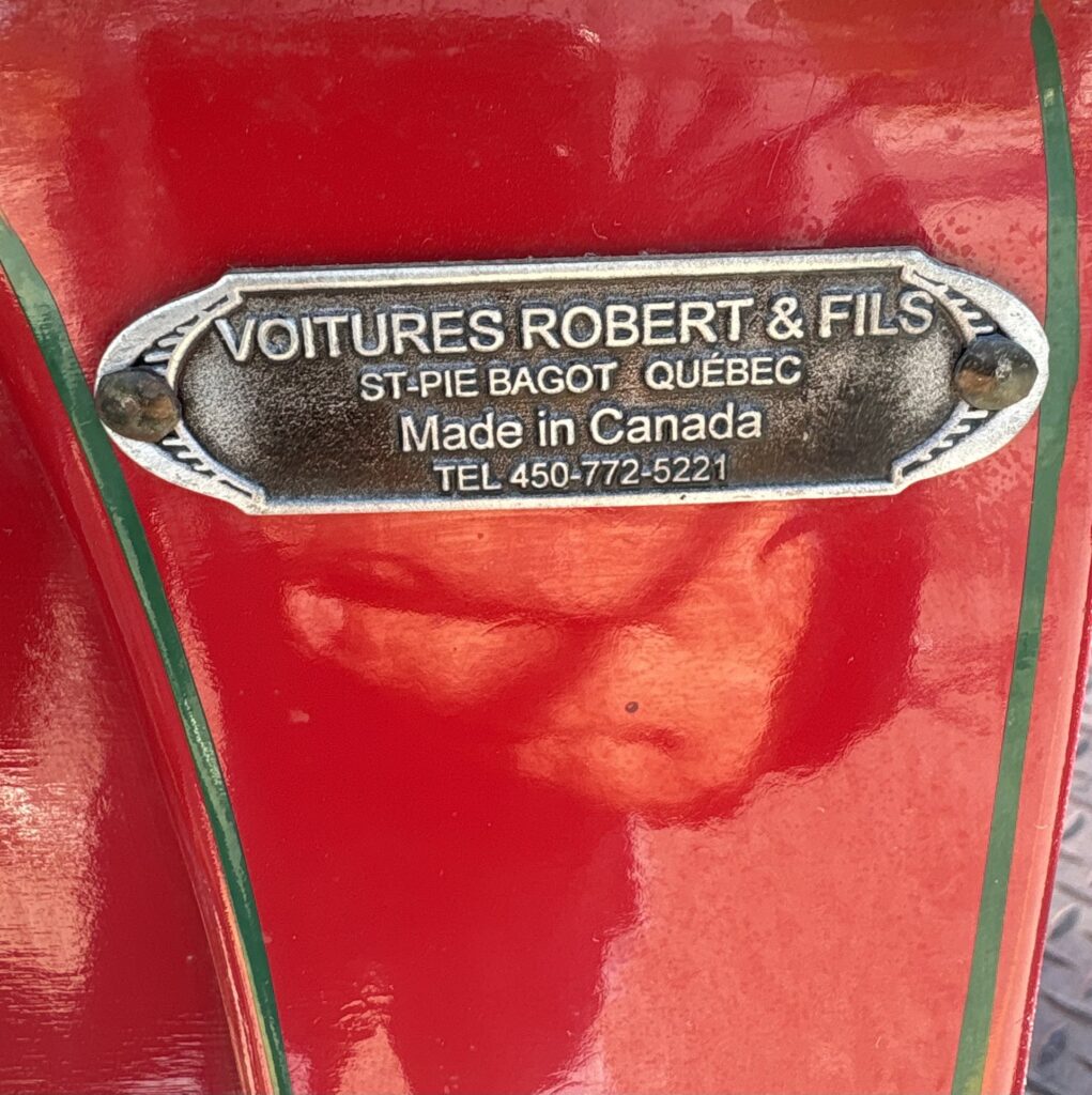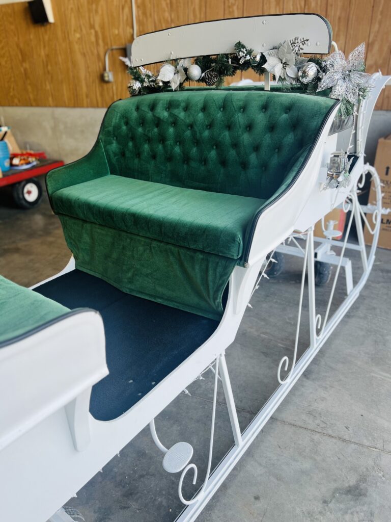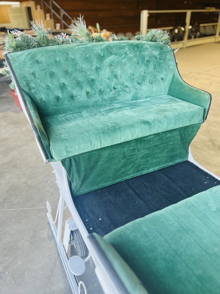 Roberts Sleigh. Red with Green Velvet Seats, Green Pinstripe and Lanterns.