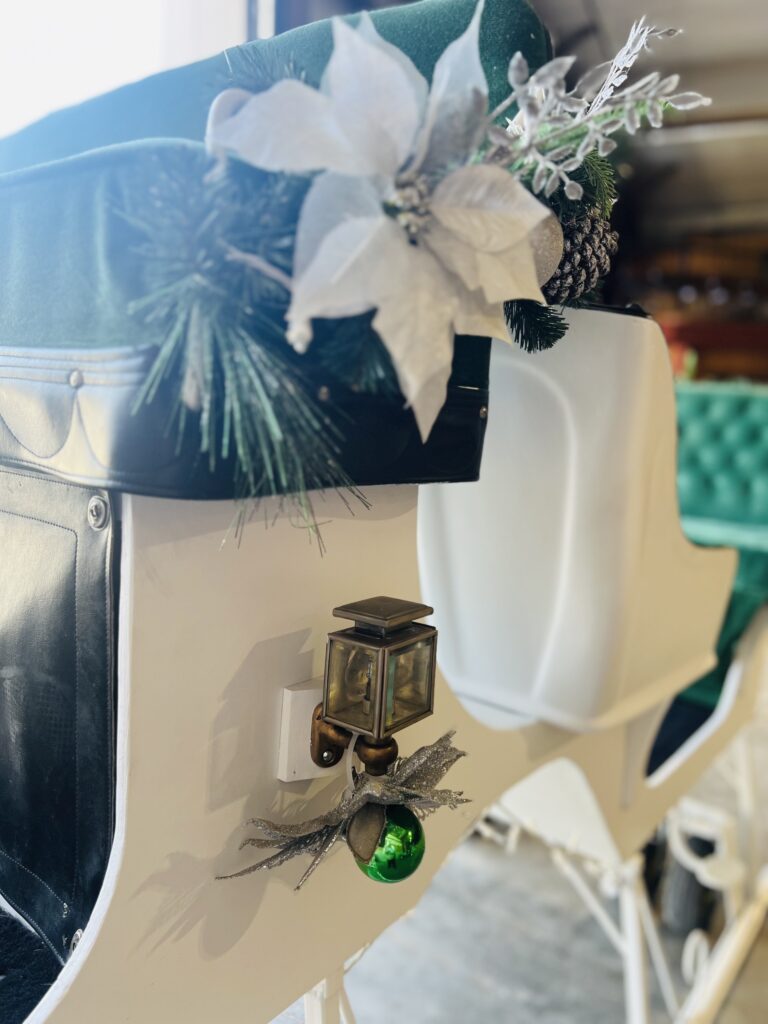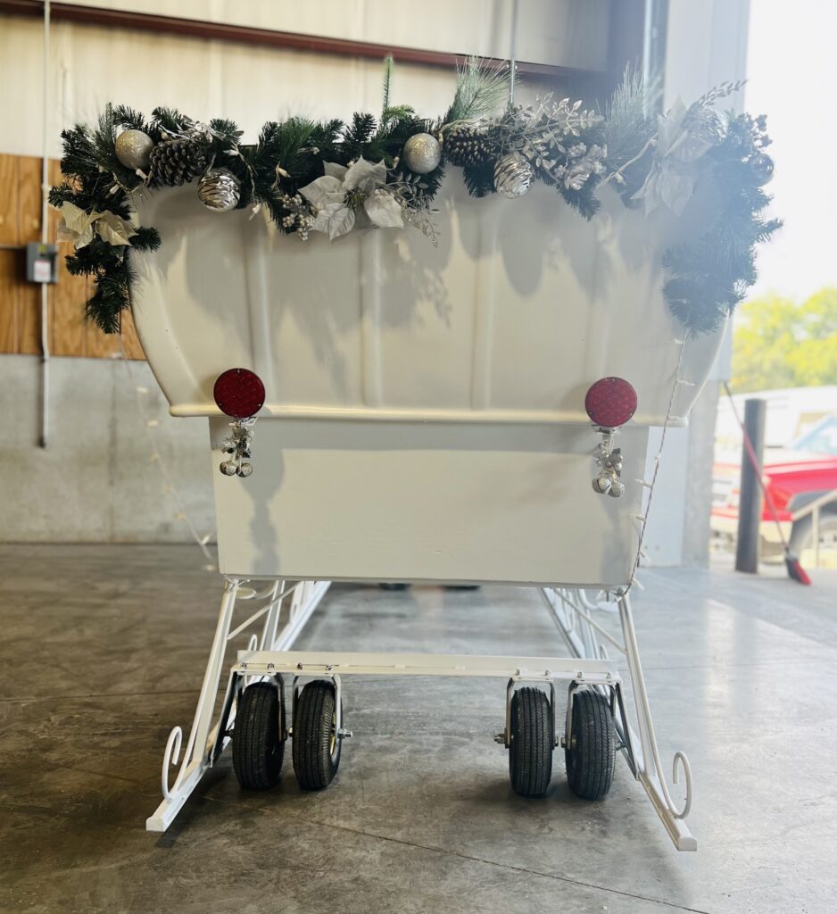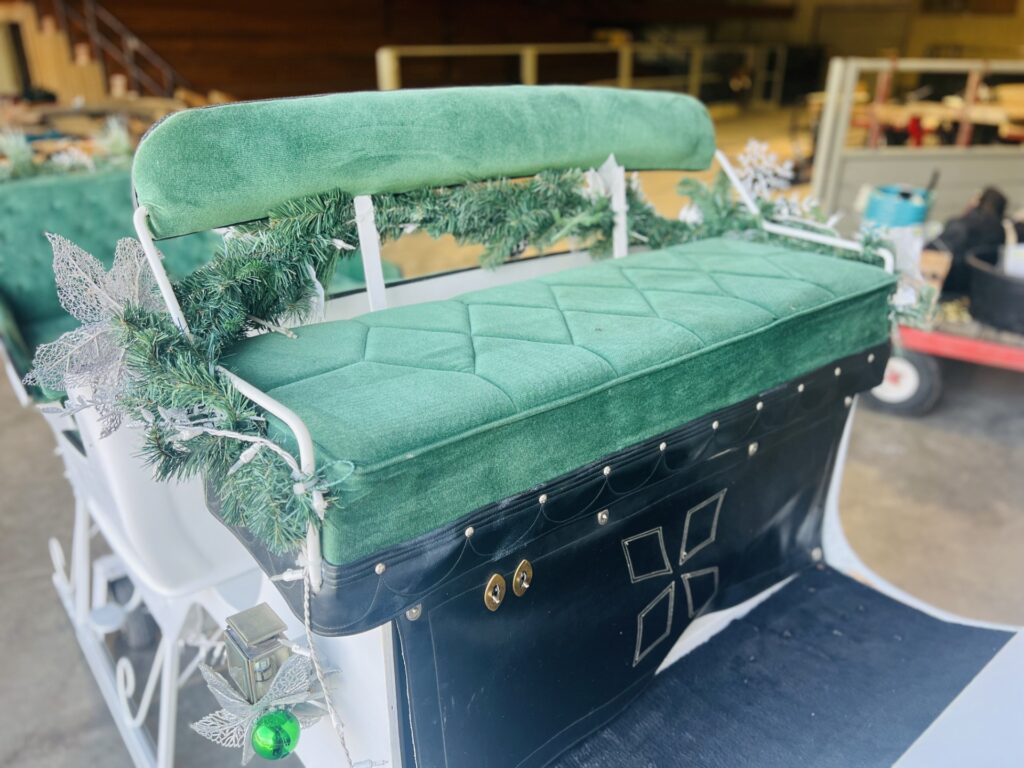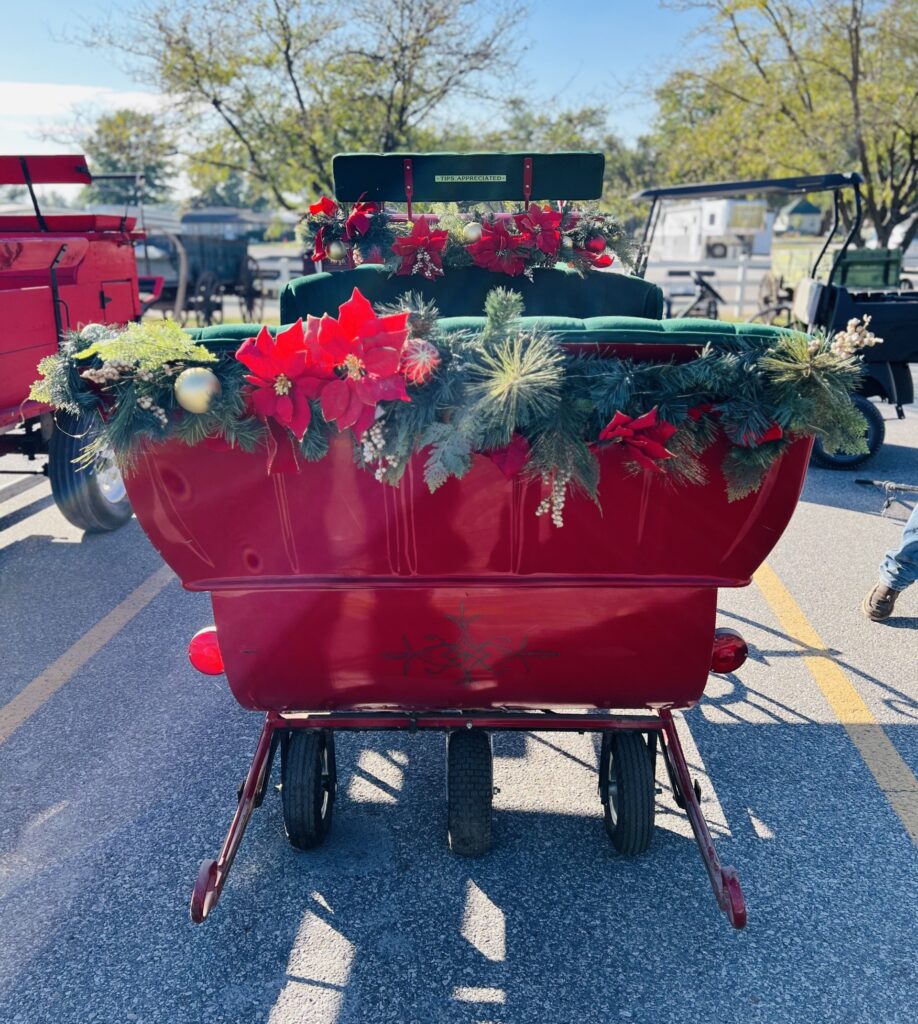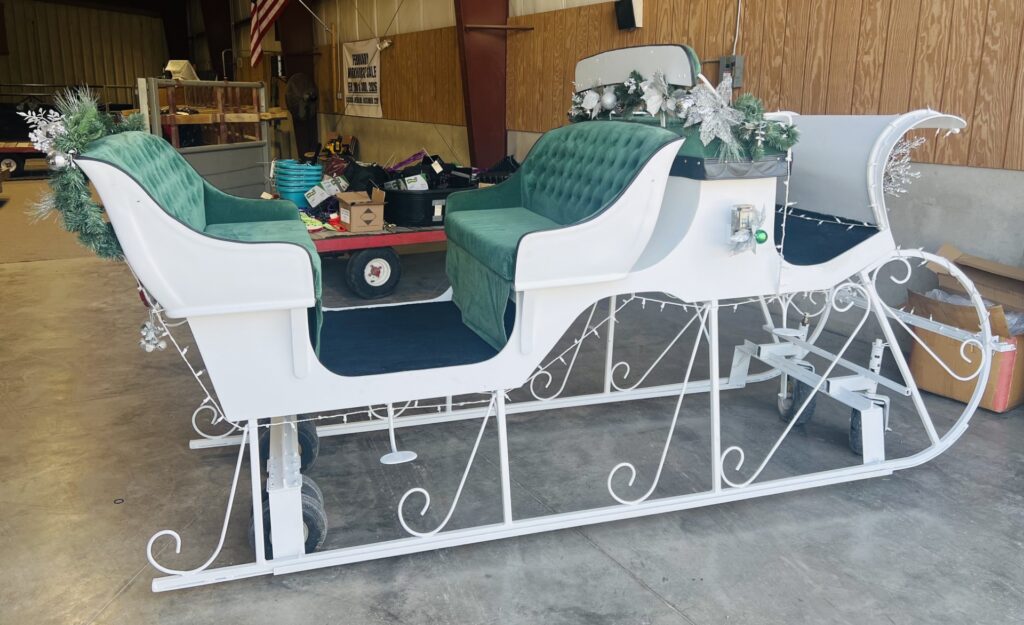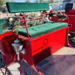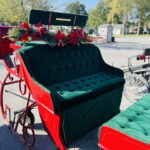 Roberts Sleigh. Red with Green Velvet Seats, Green Pinstripe and Lanterns.