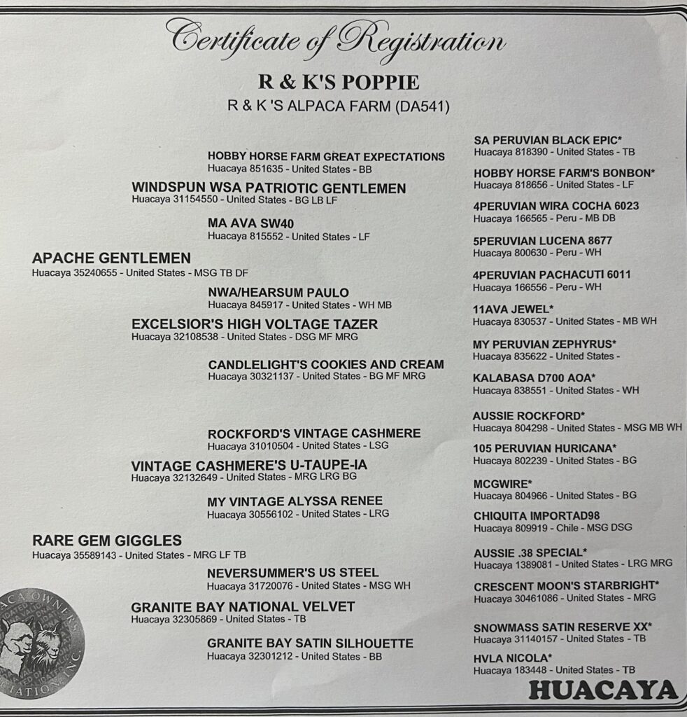 6 Registered Alpacas. Quality bloodlines. Friendly and pet quality. Most are halter trained. Females are open. UTD on vaccinations. Will sell following the sheep portion of the Wednesday, April 15th sale. Join us in-person or online bidding is available with DVAuction – new buyers please complete buyer registration form and allow 24 hour approval.