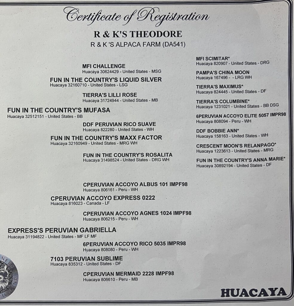 R & K’S THEODORE #35552765. Male, DOB: 4/7/20. Primary Color, 204 Medium Fawn. Secondary Color, 205, Dark Fawn. Fun In The Country’s Mufasa x Express’s Peruvian Gabriella.